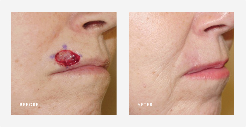 Once your surgeon is confident that the skin cancer has been completely removed, he/she will discuss the options to repair the wound. Most often the wound can be closed in a linear fashion with stitches. This turns the circular hole in the skin into a fine straight line (scar). In other cases, a more complex procedure known as a flap or graft may be required to provide the best possible cosmetic result. This decision will depend on the wound size, depth, and location. If the wound is stitched up, the stitches are removed typically one week later, though this may vary from patient to patient.